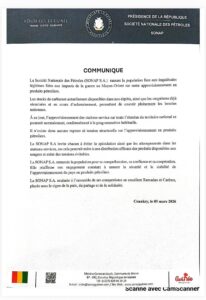 La Société Nationale des Pétroles (SONAP S.A.) rassure la population face aux inquiétudes légitimes liées aux impacts de la guerre au Moyen-Orient sur notre approvisionnement en produits pétroliers.