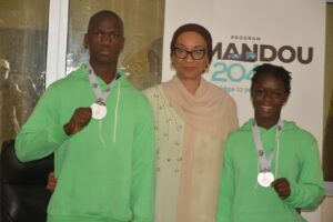 Après la présentation des différents membres qui composent la délégation guinéenne, Maître Cheick Condé a remis les deux médailles de bronze décrochées en judo par Aminata Soumah et Boubacar Diallo.